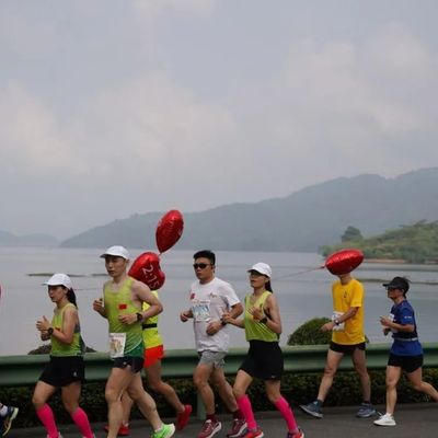 2020环四明湖半程马拉松赛今天精彩开跑,早上7点准,来自余慈地区、宁波、上虞、等地区的千名跑步爱好者,在美丽的四明湖开元山庄玉兔岛准时出发。