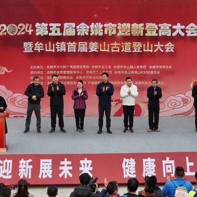 开幕式上,余姚市牟山镇党委书记张磊代表牟山镇党委、政府致欢迎词,他指出,牟山有着得天独厚的人文历史和宜人风光,这里有“金牛出水”“大禹治湖”的美丽传说,有3000年历史的竺山商周遗址、晋代马步龙窑址、宋代方长碑,有千年古樟树群、姜山美女池,有极具特色的非遗文化黄鳝舞、状元糕、姚西杂番。如今,迈入新时代新征程的牟山更是一块充满生机的热土。近年来,在市委市政府和各级部门的领导支持下,姚西明珠以其深厚独特的文化气息和精神活力,真抓实干走在前,攻坚克难担使命,全镇文化体育事业呈现蓬勃发展良好态势,健康牟山也焕发出新的生机。在这风光秀丽的姜山古道中举行迎新登高大会,既是推动文化振兴、建设和美乡村的一项有力举措,更是充分展现广大市民朋友“崇尚健康、积极向上”良好精神风貌的一场活力盛会。